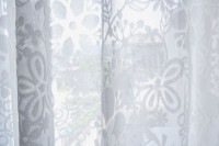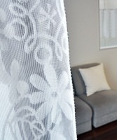 機能性とデザイン性を併せ持ち、花のような雪のようなパイル柄が可愛らしいミラーレースカーテンです。