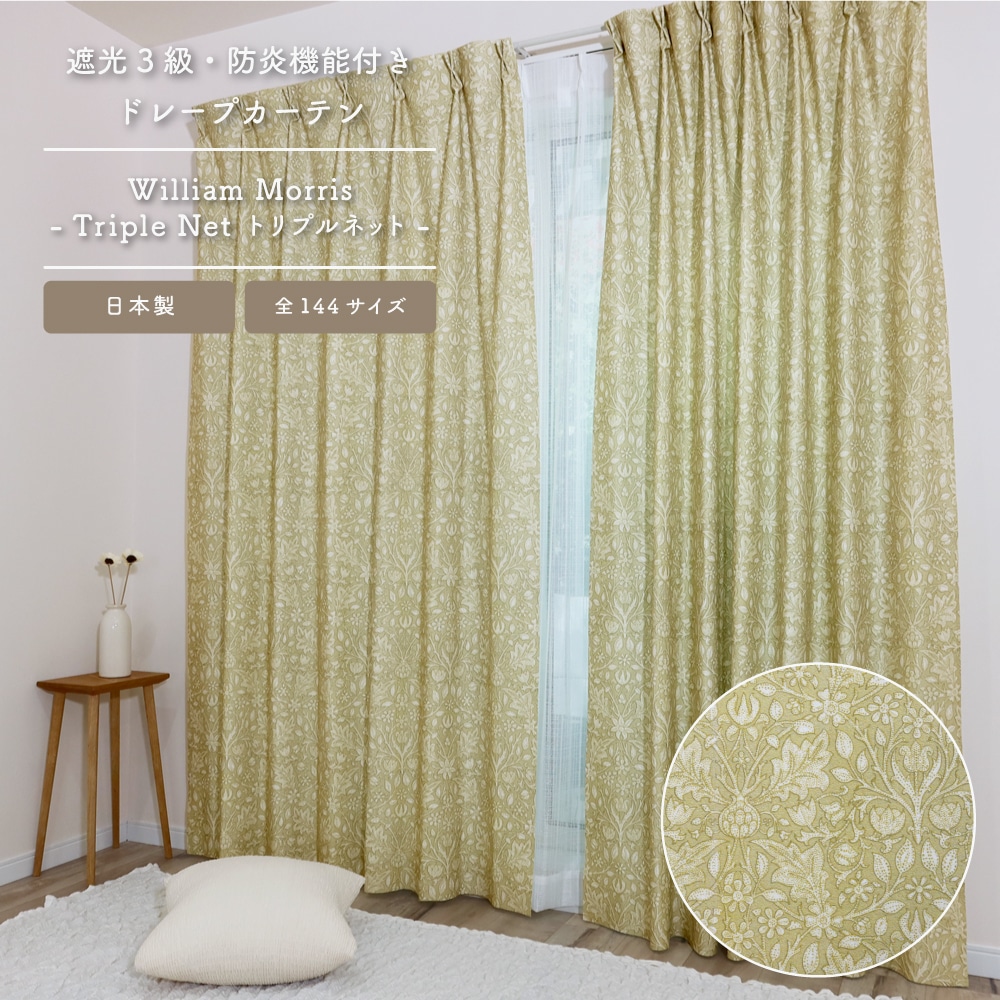 ★☆送料無料☆★【多バリエーション】【各144サイズ】ウィリアム・モリス ドレープカーテン <トリプルネット/Triple Net>【3級遮光】【防炎】【断熱】【洗濯可】
