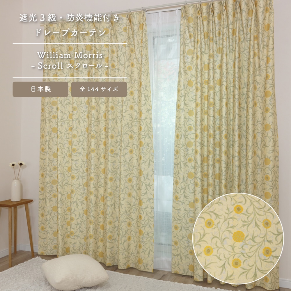 ウィリアム・モリス > ★☆送料無料☆★【多バリエーション】【各144サイズ】ウィリアム・モリス ドレープカーテン <スクロール/Scroll>【3級遮光】【防炎】【断熱】【洗濯可】