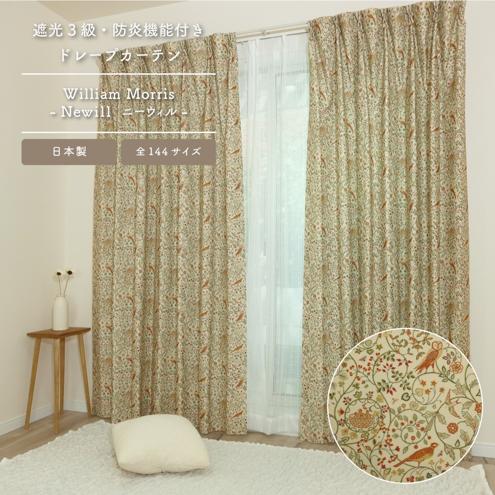 業務利用可 > ★☆送料無料☆★【多バリエーション】【各144サイズ】ウィリアム・モリス ドレープカーテン <ニーウィル/Newill>【3級遮光】【防炎】【断熱】【洗濯可】