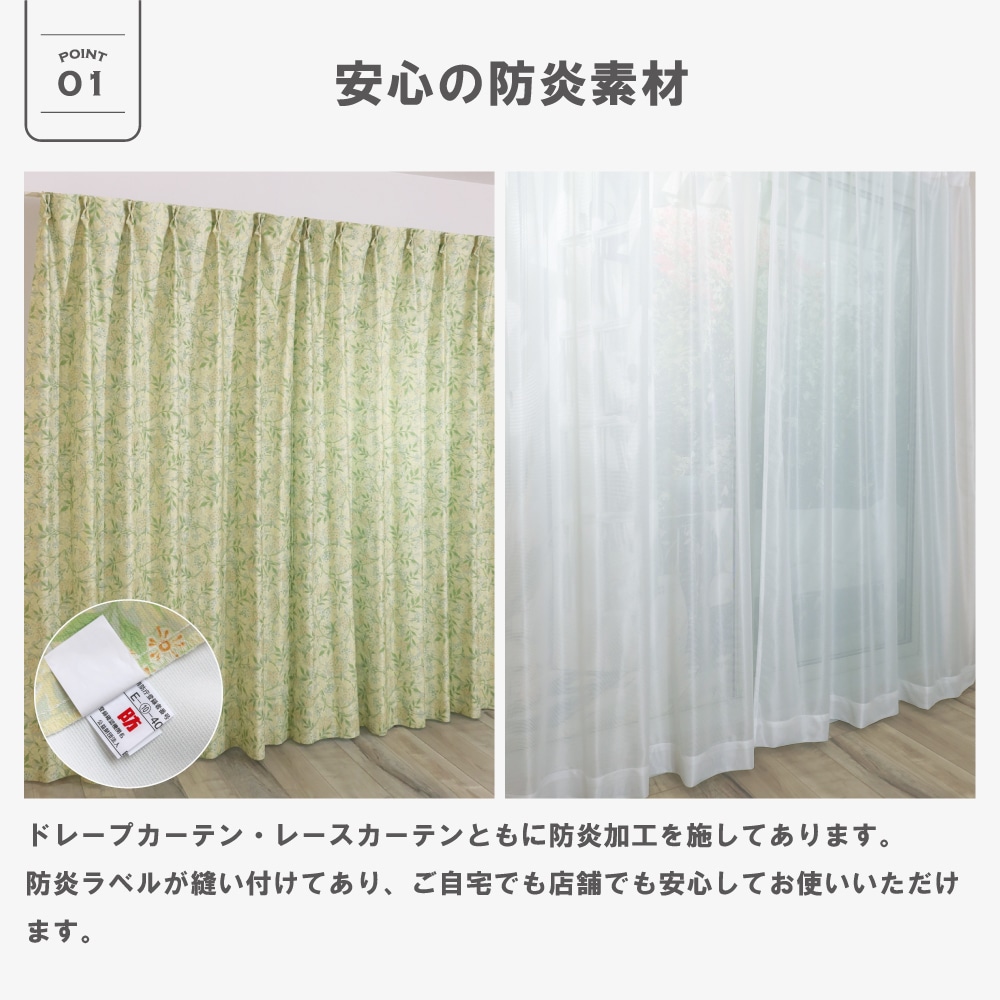 業務利用可 > 【144サイズ】 ウィリアム・モリス ドレープカーテン+レースカーテンセット 【Jasmine ジャスミン】P259S 防炎 遮熱 断熱 日本製 洗濯機OK 3級遮光防炎カーテン 防炎ミラーレースカーテン
