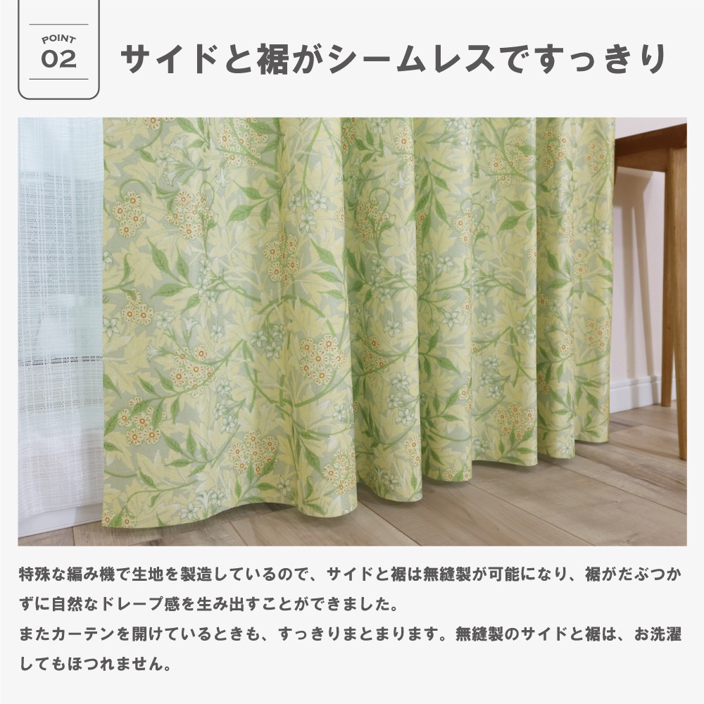 ウィリアム・モリス > 【144サイズ】 ウィリアム・モリス ドレープカーテン+レースカーテンセット 【Jasmine ジャスミン】P259S 防炎 遮熱 断熱 日本製 洗濯機OK 3級遮光防炎カーテン 防炎ミラーレースカーテン