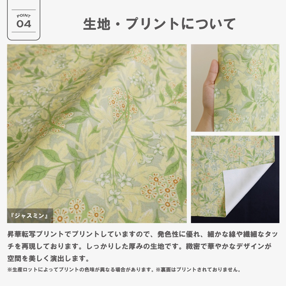 ドレープカーテン > オーダー対応(受注生産品) > カーテンセット > 【Morris】 > 【144サイズ】 ウィリアム・モリス ドレープカーテン+レースカーテンセット 【Jasmine ジャスミン】P259S 防炎 遮熱 断熱 日本製 洗濯機OK 3級遮光防炎カーテン 防炎ミラーレースカーテン