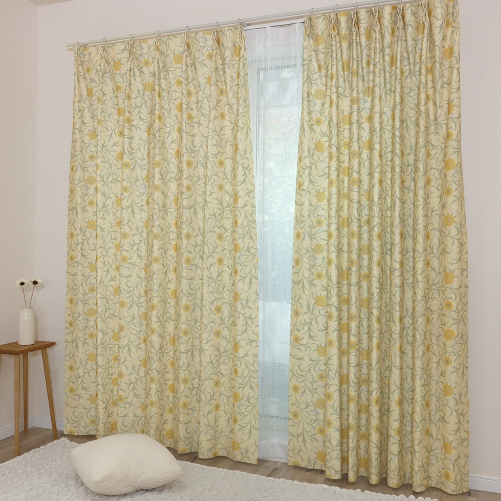 ドレープカーテン > オーダー対応(受注生産品) > 【144サイズ】 ウィリアム・モリス ドレープカーテン+レースカーテンセット 【Scroll スクロール】P265S 防炎 遮熱 断熱 日本製 洗濯機OK 3級遮光防炎カーテン 防炎ミラーレースカーテン