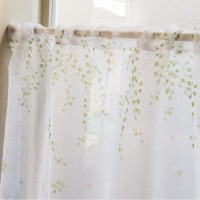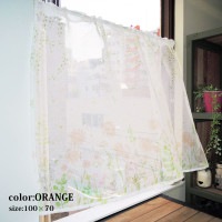 光を優しく取り込む透け感と鮮やかな彩りの植物柄が特徴のカフェカーテン。