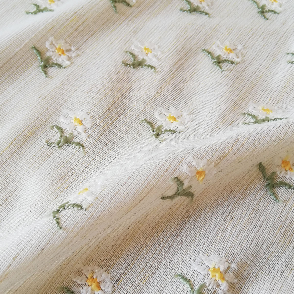 小花柄の刺繍のシンプルな生成なので、どんなお部屋にも合わせることができます。