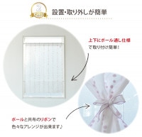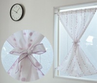 共生地のタッセルも付属しており、お好きな位置でカーテンを縛って違った雰囲気が楽しめたりと、いろんなアレンジができ、オシャレで機能性の高い小窓用レースカーテンです。