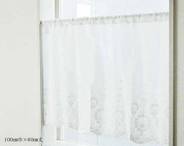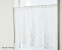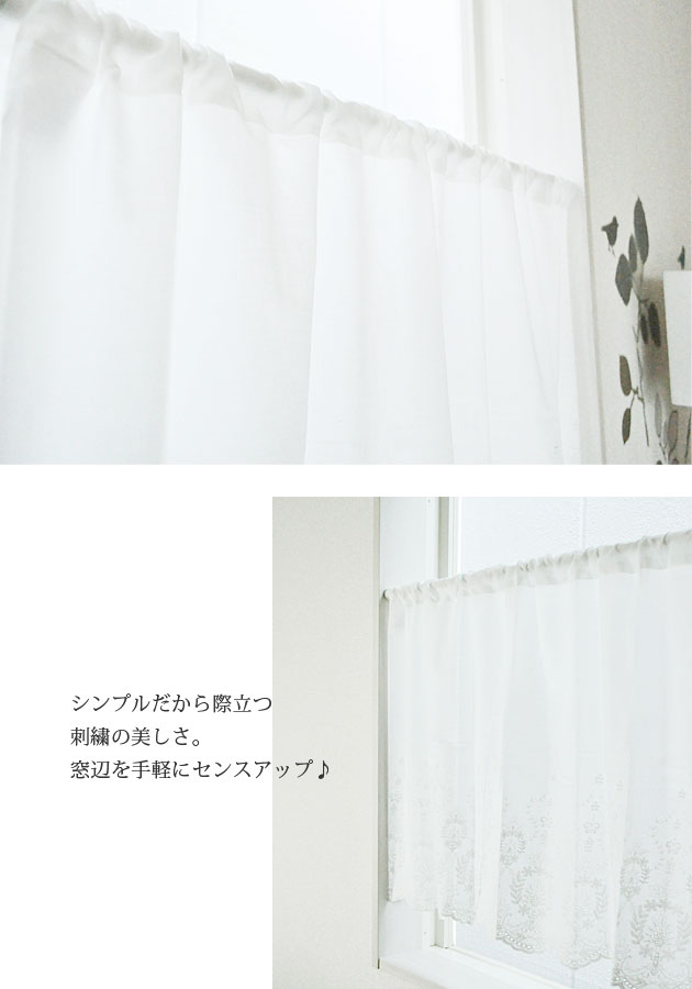 シンプルで美しいコットン刺繍カフェカーテン【Sashaサーシャ】(100cm幅×45cm丈)