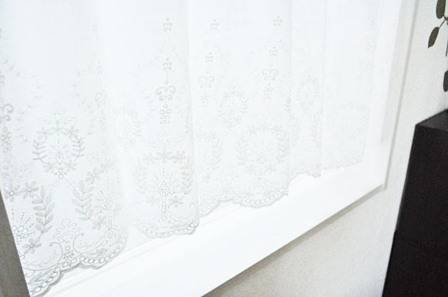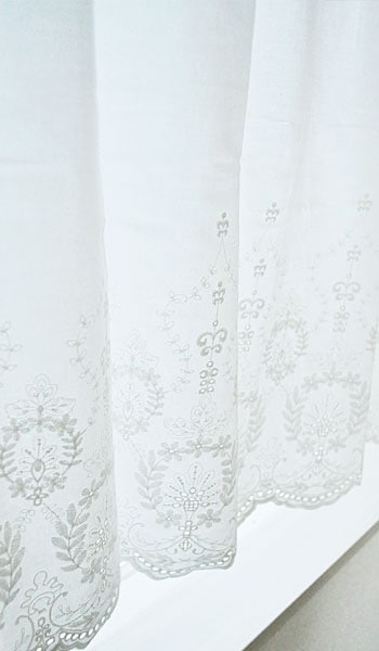 シンプルだからこそ引き立つオーナメント調の刺繍が魅力的なコットン地のカフェカーテン【Sasha サーシャ】。