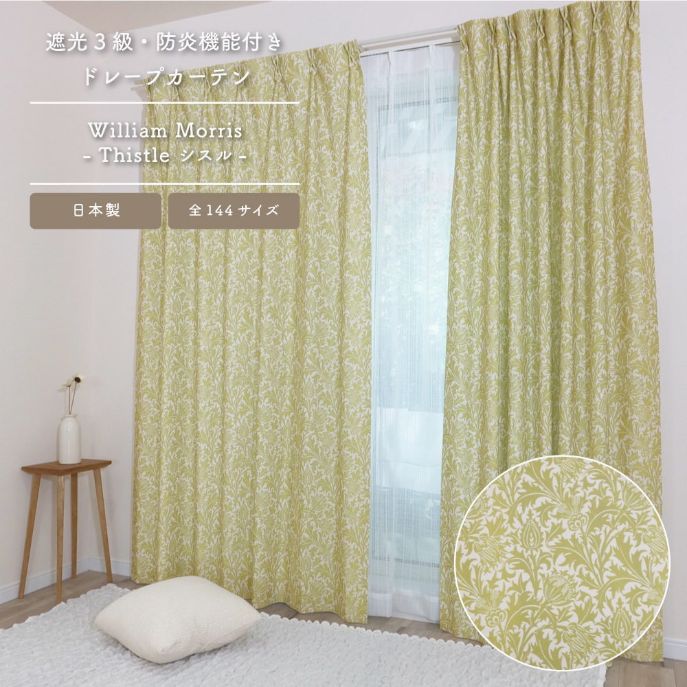 ★☆送料無料☆★【多バリエーション】【各144サイズ】ウィリアム・モリス ドレープカーテン <シスル/Thistle>【3級遮光】【防炎】【断熱】【洗濯可】