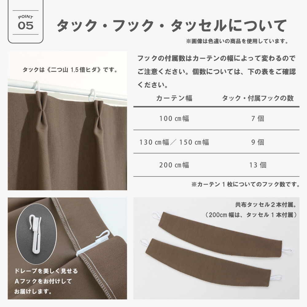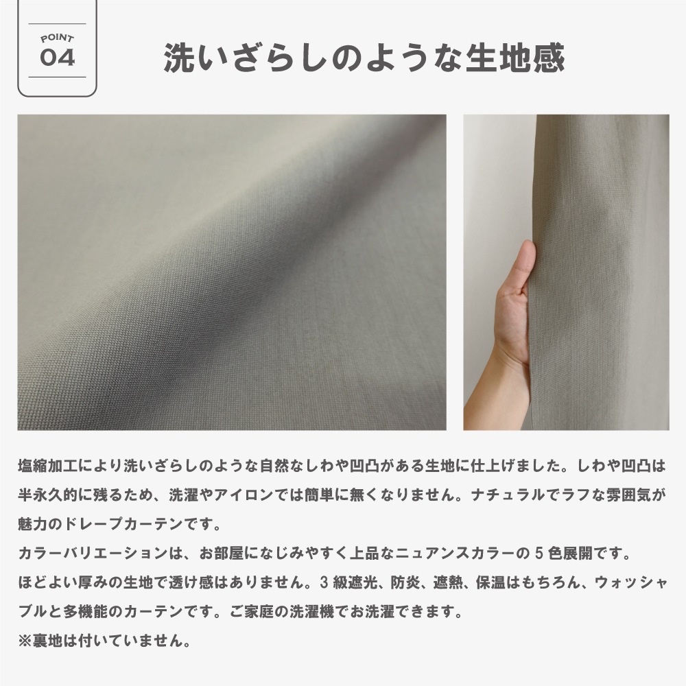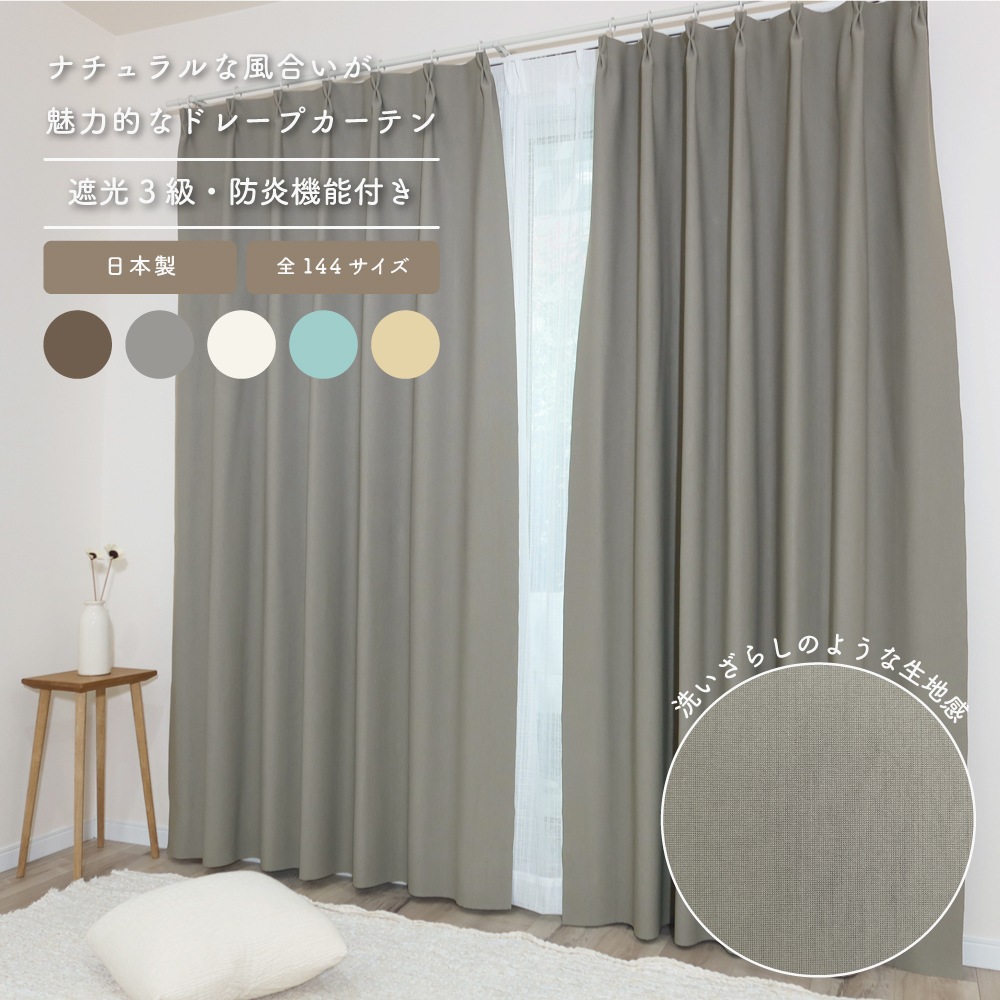 3級遮光、防炎、遮熱、保温、ウォッシャブルと多機能なシンプルなカーテンを5色用意いたしました。